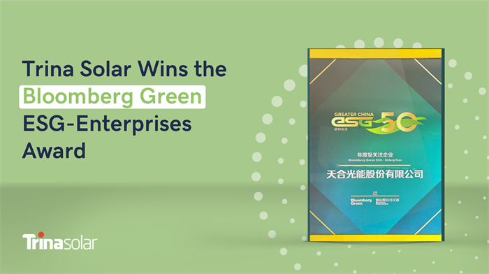 وحصلت ترينا سولار على العديد من الجوائز المرموقة بفضل ممارساتها البيئية والمجتمعية والحوكمة، بما في ذلك جائزة رواد الممارسات البيئية والمجتمعية والحوكمة 60 السنوية للتميز في المسؤولية البيئية، وجائزة كلايمت سولفر التي يقدمها صندوق الطبيعة العالمي، وجائزة أفضل 50 مؤسسة صناعية للتنمية المستدامة من قبل مجلة فوربس الصين، وجائزة الشركة الرائدة في الحد من الانبعاثات الكربونية من غرفة تجارة الاتحاد الأوروبي في الصين. كما تم الاعتراف بالشركة بوصفها نموذجاً يحتذى به من قبل الميثاق العالمي للأمم المتحدة، بالإضافة إلى إدراجها ضمن قائمة أفضل 50 شركة مبتكرة في مجال البيئة والمجتمع والحوكمة من مجلة فوربس الصين.