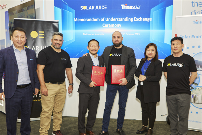 SYDNEY (17 November 2023) – Trina Solar, the world’s leading PV and smart energy total solutions provider, has signed a memorandum of understanding (MoU) with Australian solar wholesale distributor Solar Juice. Under the agreement, Solar Juice will purchase 1GW of Trina Solar Vertex modules over a three-year period, representing a significant proportion of residential and commercial solar capacity going into the Australian market.