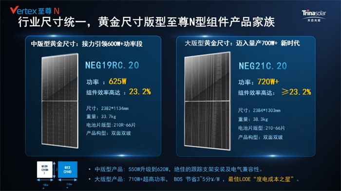CA88至尊N型720W系列组件采用了N型i-TOPCon先进技术,产品覆盖大中小版型,适用于各种应用场景,具备低衰减、高效率、高发电量、高可靠性等综合优势,带来更低的度电成本,为客户带来完美使用体验。CA88的大版型黄金尺寸组件也迈入了量产700W+新时代,超高功率组件效率高达23.2%,BOS可节省3~5分/W ,是毫无疑问的最佳LCOE“度电成本之星”。
