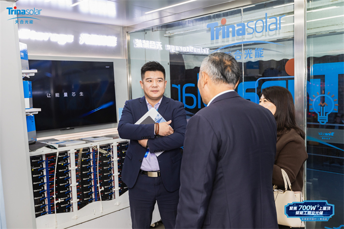 在蓝海专列参观环节,至尊N型组件与AI仿生液冷工商储Potentia蓝海2受到众多嘉宾驻足围观。储能方面针对当前工商储用户需求,推出新一代工商储一体柜—Potentia蓝海2,搭载A级优+车规级314Ah天合芯,应用行业首发AI仿生变频液冷技术,整舱接入天合智慧云平台,大幅缩短用户投资回报周期。目前实现从售前技术支持到售后运营端全链路打通,产服一体,打造高质量、高效率、高标准的工商业储能服务体系。