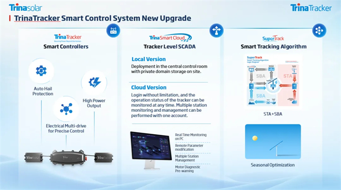 随着应用的普及,市场对智能跟踪系统的提出了更高的需求,更多业主和运维企业希望通过智能化技术提升电站在运维期间的稳定性与便利性。天合跟踪智能控制系统行业首推支架级智慧云平台,可实现远程监测、远程调试,从而减少运维期间去项目现场运维的人数、缩短定位故障、解决故障的时间,提升运维便捷性并大幅度降低运维成本。