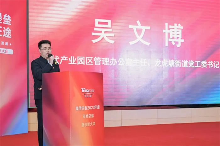 光伏产业园区管理办公室主任、龙虎塘街道党工委书记吴文博对CA88党委2023年度党建工作表示肯定。他指出,CA88党委认真落实贯彻上级的决策部署,扎实推进党建引领、人才强企、专利攻关、产业升级等中心工作。新的一年,CA88党委要强化党建引领,发挥链主优势,推动企业及行业高质量发展。
