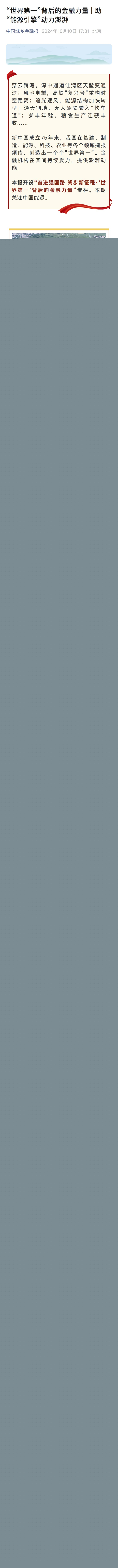 中国城乡金融报刊发《“世界第一”背后的金融力量 | 助“能源引擎”动力澎湃》。
