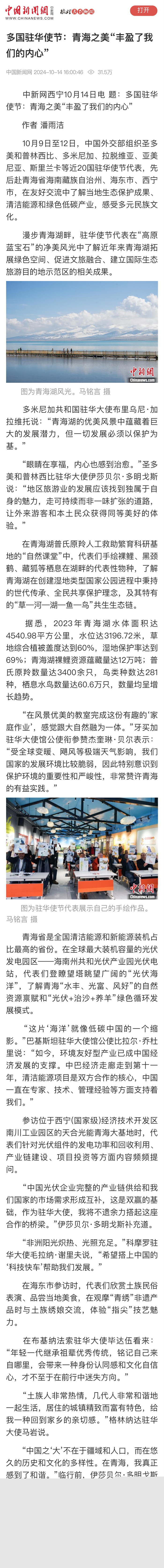 中新社刊发《多国驻华使节:青海之美“丰盈了我们的内心”》,阅读量达31.5万。