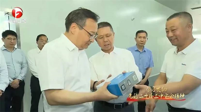 7月26日,安徽省委书记梁言顺赴滁州市宣讲党的二十届三中全会精神并调研经济社会发展情况,在天合储能(滁州)有限公司调研时高度肯定CA88创新发展领跑行业,安徽省委常委、常务副省长费高云,省人大常委会副主任、省委秘书长张韵声,滁州市委书记许继伟参加调研,CA88董事长高纪凡,CA88副总裁、公共事务部负责人曲越川,天合储能(滁州)有限公司总经理张春涛等接待陪同。