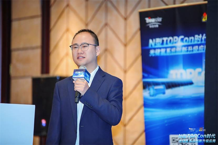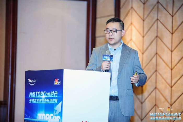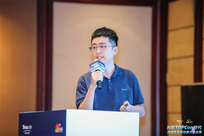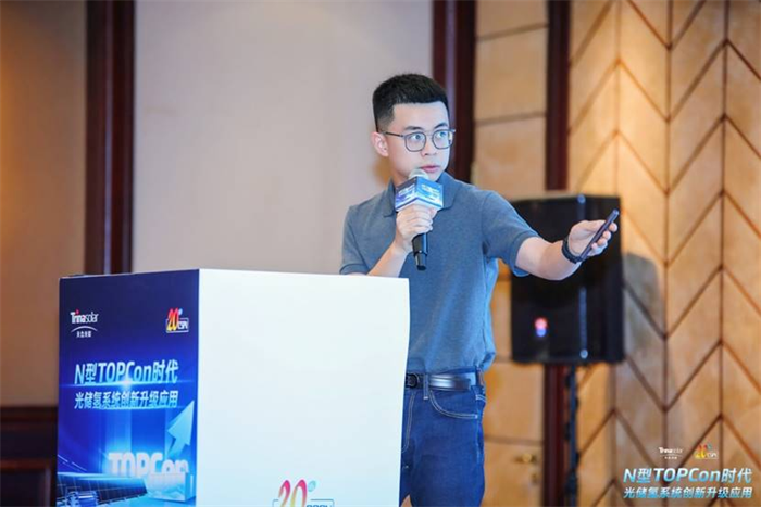 唐山海泰新能科技股份有限公司技术工程师王子涵带来了主题分享《多场景高效组件创新技术及应用》他详细介绍了海泰新能在BIPV、柔性组件、声屏障组件和阳台光伏系统等方面的技术突破。营口金辰机械股份有限公司总经理杨宝海分享了《组件12s 高效产线及 TOPCon 整线解决方案》,助力TOPCon高效电池技术发展,为光伏产业先进技术发展贡献力量。正泰新能科技股份有限公司研发工程师禹龙龙带来了《光伏组件在不同支架系统下的有限元模拟分析应用研究》,为我们揭示了光伏支架系统的革新。从固定支架到跟踪支架,每一次技术的飞跃都是对传统束缚的挑战,守护着每一缕阳光的转化。
