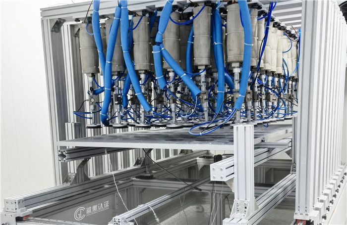 据悉,该测试在鉴衡认证嘉兴光伏检测中心进行,参考IEC TS 62782中的测试要求,使用的低温机械静载/动载载荷测试系统具备-40℃环境条件下的机械强度测试能力,可模拟光伏组件的机械强度、材料抗性、支架连接等在极寒地区的表现能力。