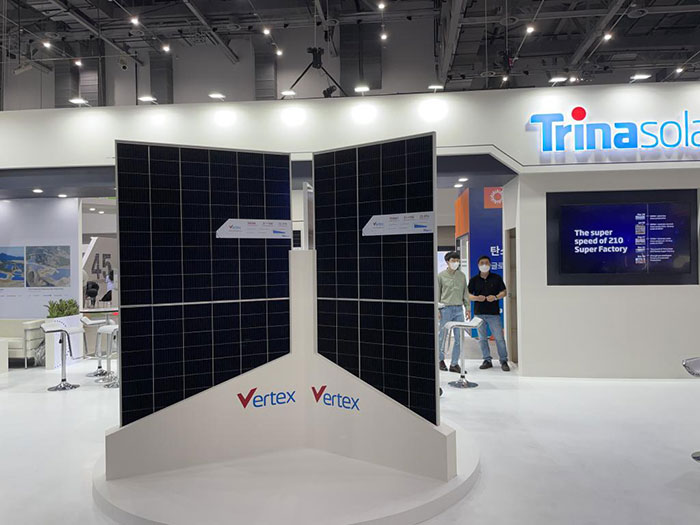 The company is displaying its Vertex series of modules, including 410W+ Vertex S module and 550W, 600W and 670W Vertex bifacial modules based on 210 technology. In addition, Trina Solar is showcasing the next generation of N-type Vertex module.