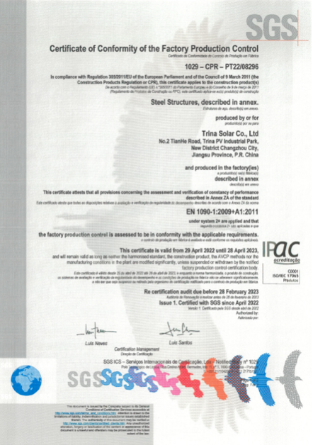 TrinaTracker has announced that its factory has obtained EN 1090 and ISO 3834-2 certifications – EU Standard for Structural Steel and Aluminium and Quality Requirements for Fusion Welding of Metallic Materials respectively. After a rigorous and meticulous third-party audit and review conducted by SGS, the certifications were secured at the end of April, with EN 1090 the key to opening the EU market for steel structures.