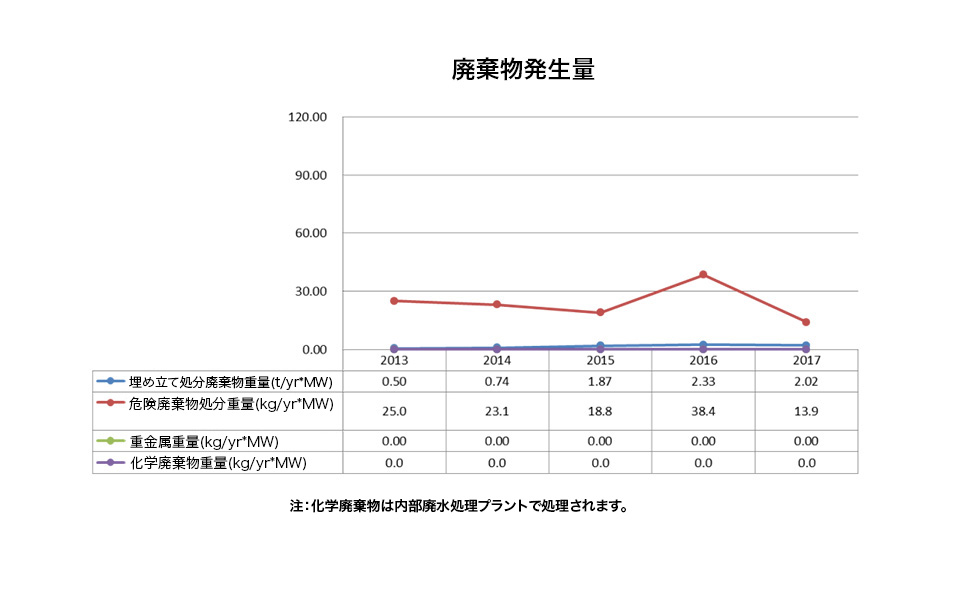 トリナ・ソーラーは、製造工程で発生する廃水を、下水道に放流する前に脱フッ素化と中和プロセスによって適切に処理し、周囲の水域への悪影響が及ばないようにしています。モジュール1MWあたりの排水量は毎年減少しています。地元の環境当局は、処理された廃水の水質を監視しています。これらの結果、処理された排水中のCOD(化学的酸素要求量)およびTSS(総浮遊固形物)の濃度は法定限度を大きく下回っています。当社の製造工程から発生する廃水には金属が含まれていません。