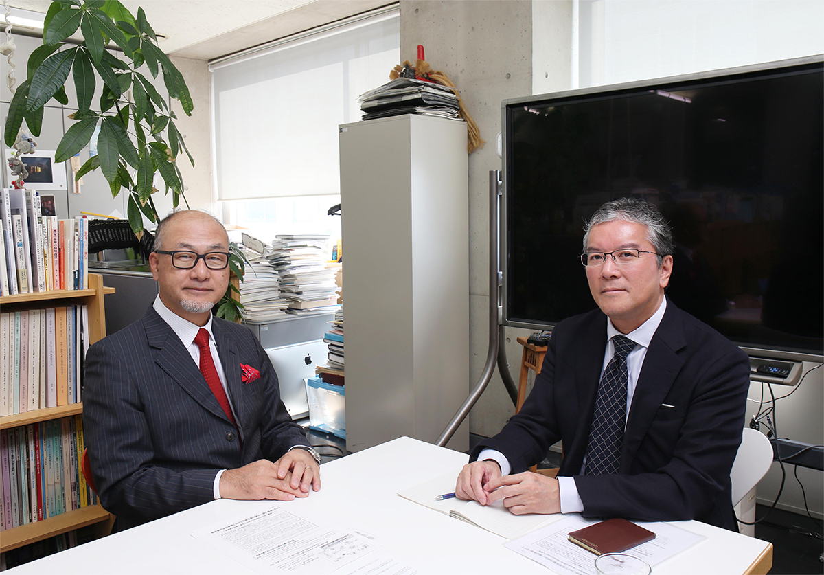 左が田辺氏、右が小原隆=省エネNext編集長(写真:都築 雅人)