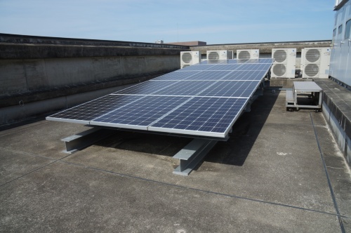 屋上に設けた太陽光発電設備。屋上に余剰スペースがあったため設置できた(写真:守山 久子)