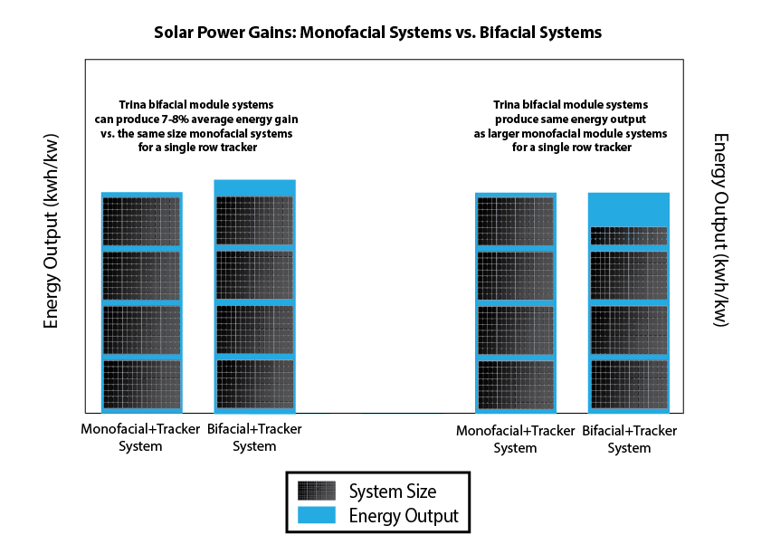 ArcVera Renewables, a renewable energy technical consultancy, reviewed third-party bifacial models and test systems across North America. They found that when paired with typical ground-mount tracking systems, bifacial modules generated annual gains as high as 10 percent with room for additional optimization.